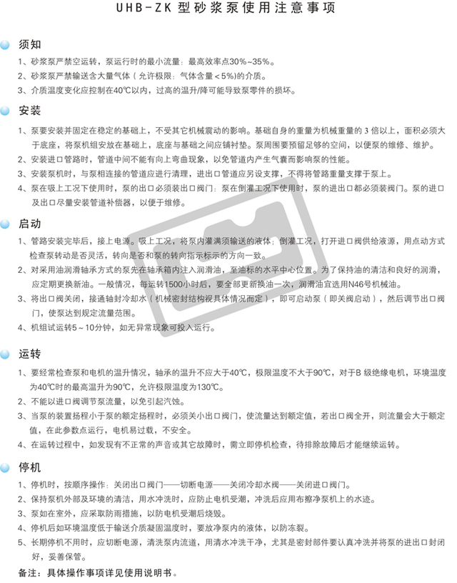 UHB-ZK型系列砂漿泵為懸臂式單級(jí)、單吸離心泵,其過(guò)流部件采用鋼襯超高分子量聚乙烯制造,具有較強(qiáng)的耐腐蝕性、卓越的耐磨性、抗蠕變性(耐環(huán)境應(yīng)力開(kāi)裂),同時(shí)采用金屬基體結(jié)構(gòu),提高了產(chǎn)品承壓能力。